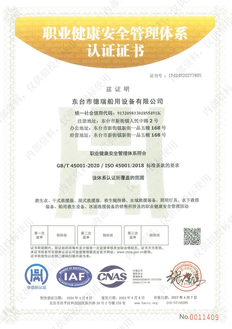 職業(yè)健康安全管理體系認(rèn)證證書(英文版)