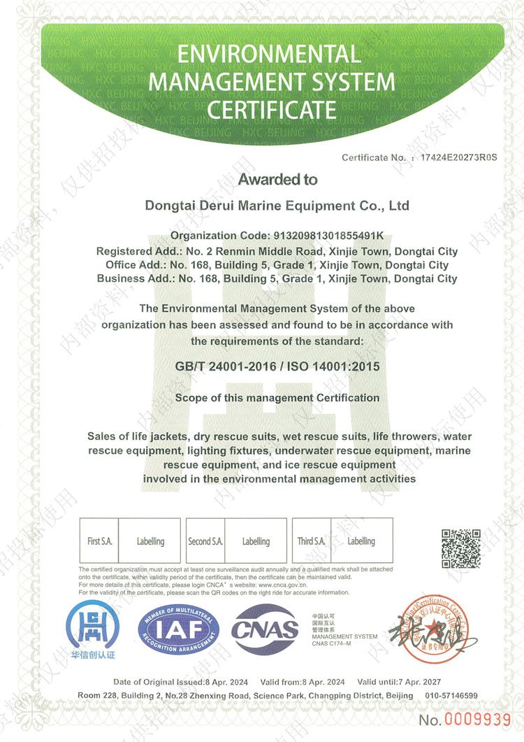 環(huán)境管理體系認(rèn)證證書(英文版)